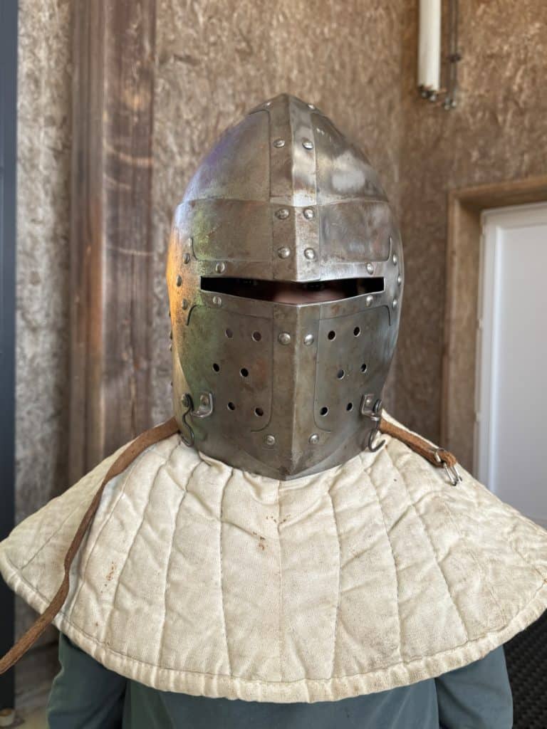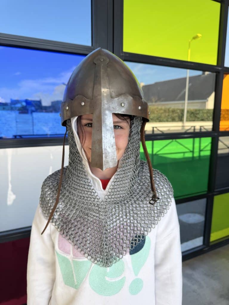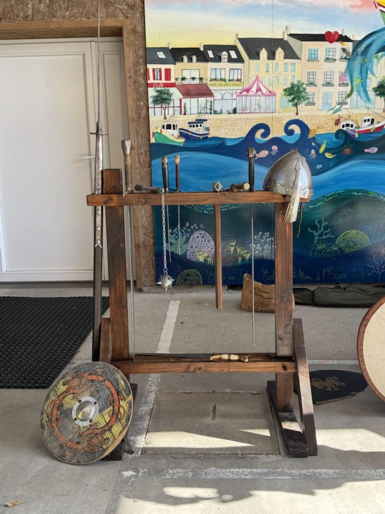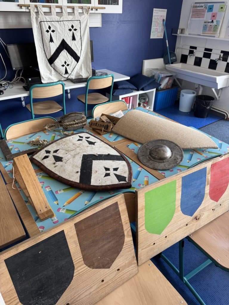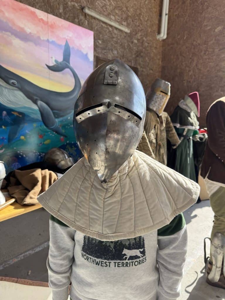 Tout au long de l’après-midi, les intervenants ont partagé leur passion et leurs connaissances avec enthousiasme. Les enfants ont découvert les différentes tenues portées à l’époque médiévale, ainsi que les armes et armures utilisées par les chevaliers. Grâce à des explications claires et captivantes, ils ont mieux compris le rôle de chaque élément d’équipement et son importance dans les combats.